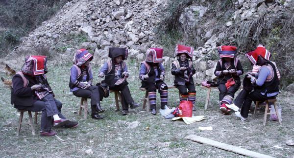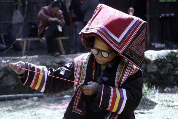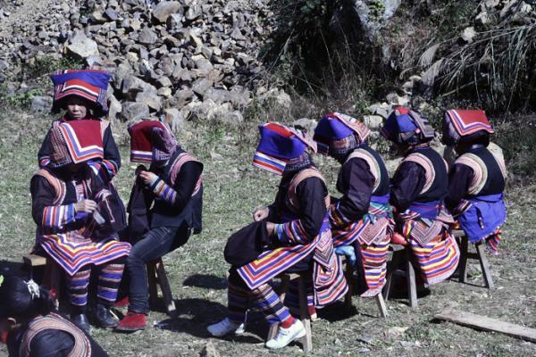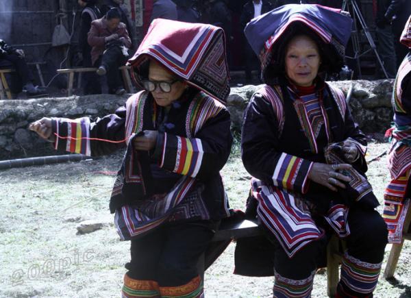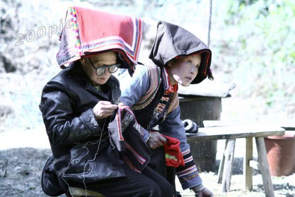 闲时,瑶寨的妇女们便聚在一起绣服饰,同时谈一些生活琐事,东家长西家短的。谈着谈着,一件件漂亮的服饰就在她们手中产生了。